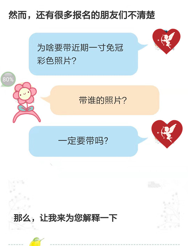 报名时需携带报名人身份证,专科以上提供本科学位证,生活照片一张,一寸纸质版照片一张办理出入证以及户口簿(离异证明、丧偶证明),(注明:学历证不在身边可以用你本人身份证号去学信网上查询截图拍照,也或者让家人给你拍照发过来。其次是父母帮你代报名时,一定要让本人打好草稿,重点是QQ号,微信号,手机号,不要遗漏)