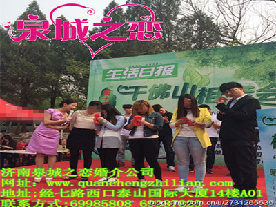 2015年的第十届千佛山三月三万人相亲会在4月18日济南千佛山游景区徐徐拉开了帷幕。由生活日报联合济南电视台都市频道、济南市委、济南市妇联、济南泉城之恋及各个协办单位共同打造的山东省内公众相亲第一品牌。这次的“万人千佛山相亲会”即将持续整整九天的时间(4月18日-4月26日),18日开幕当天就迎来不少帅哥美女及众多的孩子的父母。18日这一天上山相亲的市民就达到了上万人次。现场的到底是怎样的一个相亲盛况呢?那么就让泉城之恋的菲儿带你一起去山上逛逛看看吧,相信这次你跟着菲儿走一趟,一定会让你不虚此行的......幸福热线:69985808