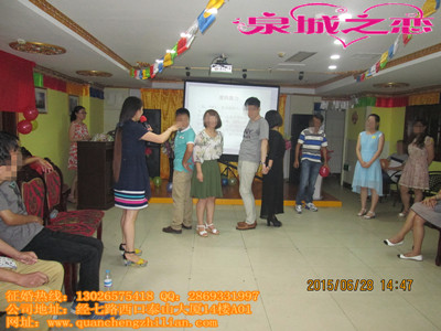 菲儿看到现场的男孩与女孩都是比较害羞,紧张,不是很放松的。我们的主持人婚恋老师给大家准备了一些小互动游戏,让大家彼此放下矜持与不好意思,都动起来。