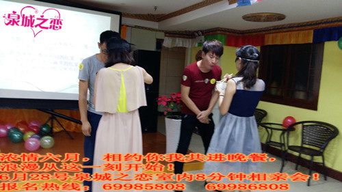 6月28日的这一天,虽然天气不是很晴,但在略有阴雨点欲欲想下的时候,下午2点半浓情六月,泉城有爱室内八分钟相亲会准时开始了。大家没有被炎热的天气所影响。小编菲儿记得一个男孩子是97号,早早的来到了现场。这份精神值得很多男孩子学习。守时间也是对自己的一种尊重。就是这个穿浅蓝色的男孩子。当时他还简单的说了一句,一个成功的男人要想成功,就需要遇到两个优秀的女人,一个是生养他的母亲,另一个是他未来的另一半。这句话很有深意,女孩子不要错过吆!!