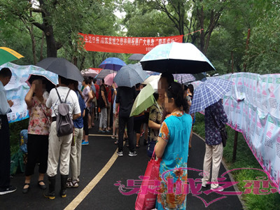 8月6日上午,第十届“七月七千佛山相亲大会”在千佛山风景名胜区盛大开幕.相亲展示牌前人来人往,都在寻找自己最中意的另一半。下午突降大雨,但是仍然浇灭不了人们的热情,相亲会现场雨伞相连,雨伞下相亲有了格外的一番景致。初步估计,相亲会首日近3万人次上山寻缘相亲会还将举办8天,单身的你抓紧来千佛山相亲会现场吧。