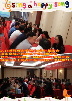 2018母亲节,济南的初夏,天空湛蓝,微风阵阵,给人一种舒爽的感觉。济南银座佳悦酒店山东泉城之恋婚介有限公司举办,2018母亲节8分钟室内相亲会在现场火热进行!